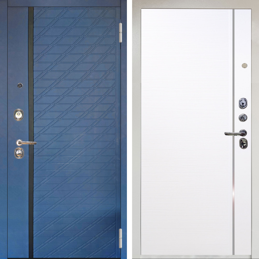 Входная дверь Аргус ЛЮКС 3К Снежно-белый Тори Синий софт + Гауда Роял Вуд Белый