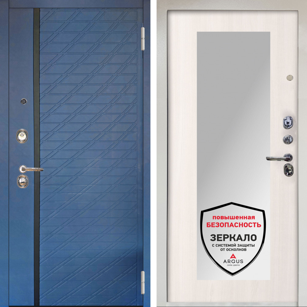 Входная дверь Аргус ЛЮКС 3К Снежно-белый Тори Синий софт + Милли Ларче светлый