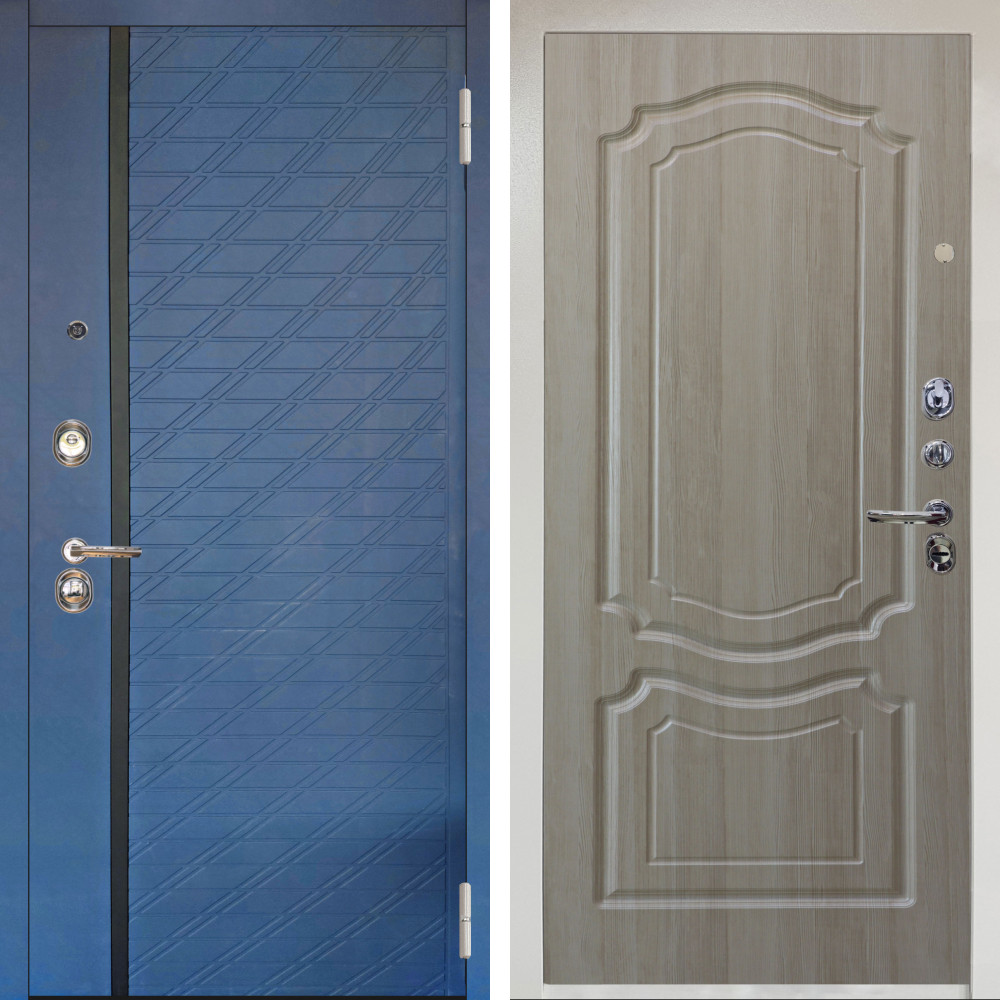 Входная дверь Аргус ЛЮКС 3К Снежно-белый Тори Синий софт + Мишель Ларче светлый