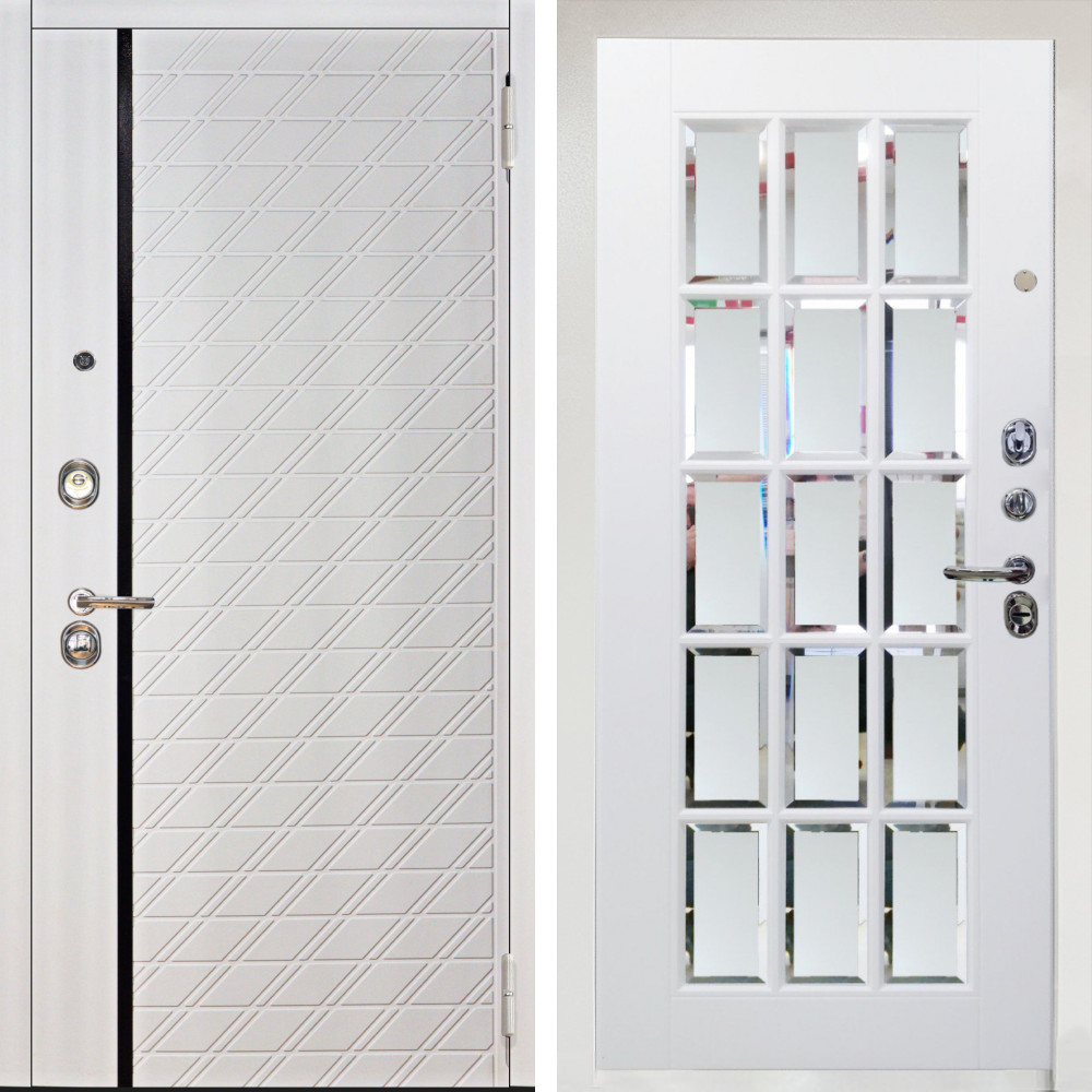 Входная дверь Аргус ЛЮКС 3К Снежно-белый Тори Софт милк + Мэрелин Софт милк с фацетом и пескоструем