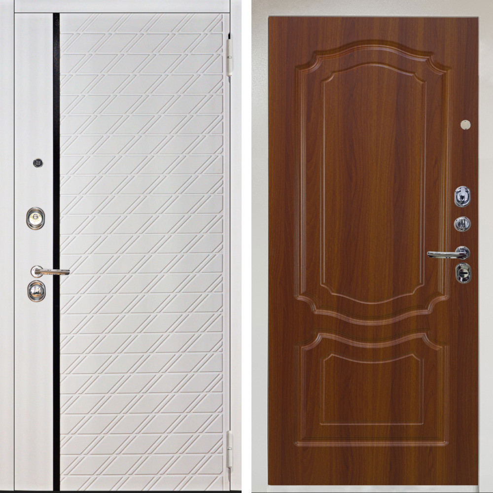 Входная дверь Вертикаль Блек SMART с внутренней отделкой МС-100 белый матовый • Габаритные размеры: 2050x860 мм, 2050x960 мм • Металл 1.8мм. Черная шагрень • Внешнее покрытие: МДФ 12 мм. • Толщина полотна: 115 мм. • Толщина коробки: 120 мм. • Короб закрытого типа, утепленный • Уплотнитель: 3 контура • Два вертикальных ребра жесткости • ЭЛЕКТРОННЫЙ ЗАМОК НА ВЫБОР • Замок дополнительный: Гардиан 6001 • Врезная броненакладка • Пазы на коробке под доборы • Независимая задвижка есть • Фурнитура ЧЕРНАЯ