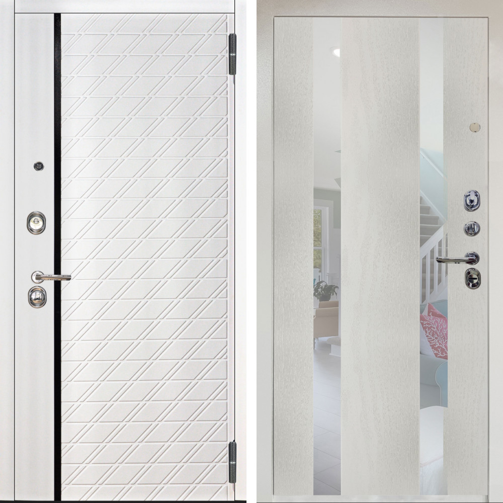Входная дверь Termo-Door с утеплением: внешняя отделка Геометрия Дуб, внутренняя отделка Зеркало Фацет Grey софт.Толщина полотна 100 мм., цилиндровый замок, доставка и установка в Москве и МО, гарантия 1 год.
