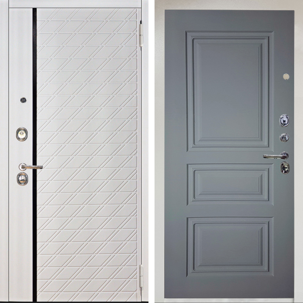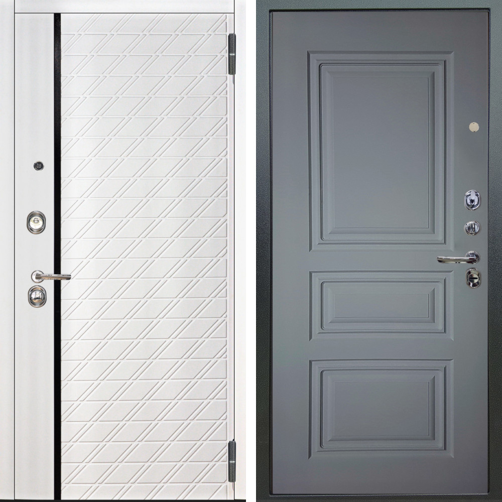 Входная дверь Termo-Door с утеплением: внешняя отделка Геометрия Бетон, внутренняя отделка Марсель Белый софт.Толщина полотна 100 мм., цилиндровый замок, доставка и установка в Москве и МО, гарантия 1 год.