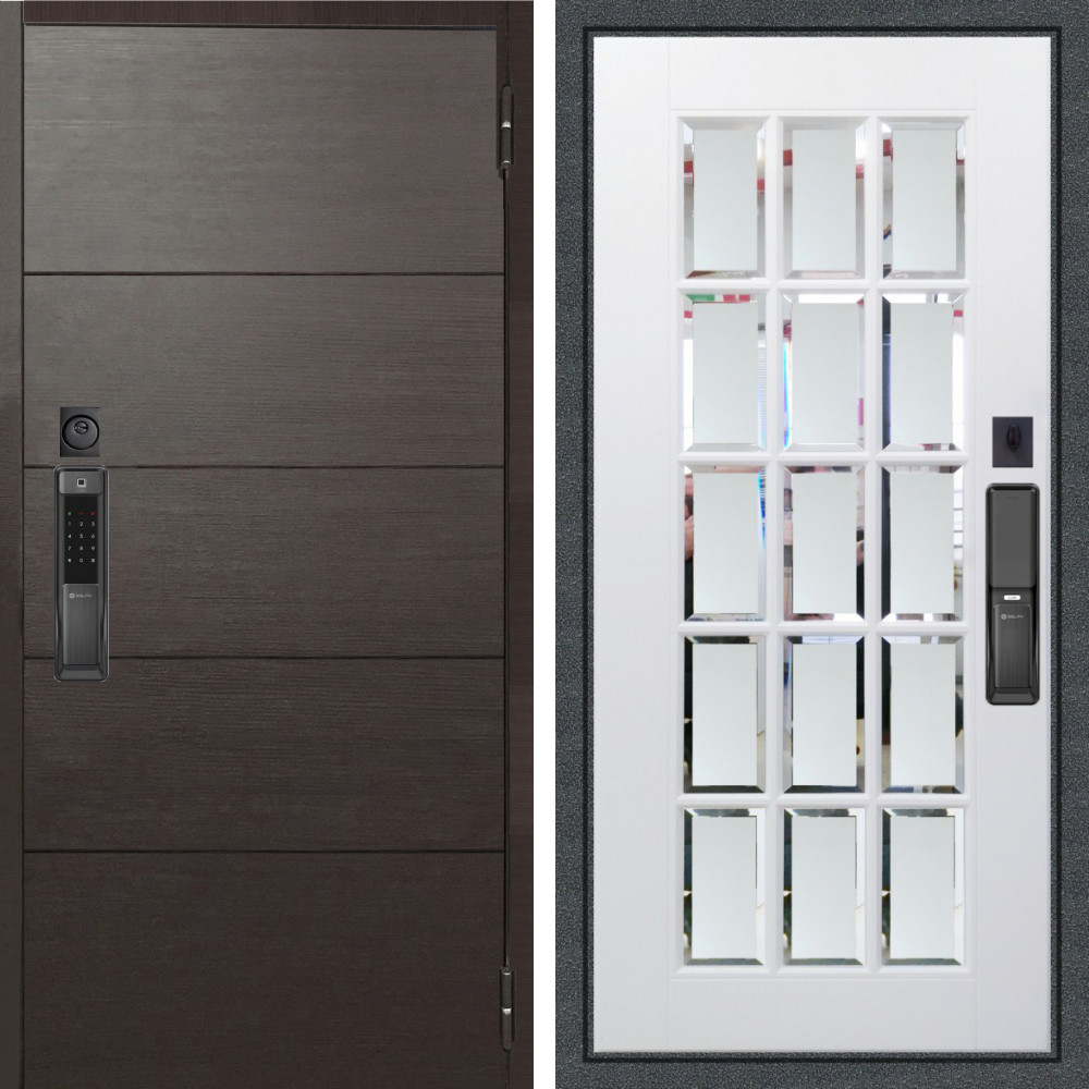 Входная дверь Аргус SMART Агат Венге горизонт + Мэрелин Софт милк зеркало с фацетом и пескоструем