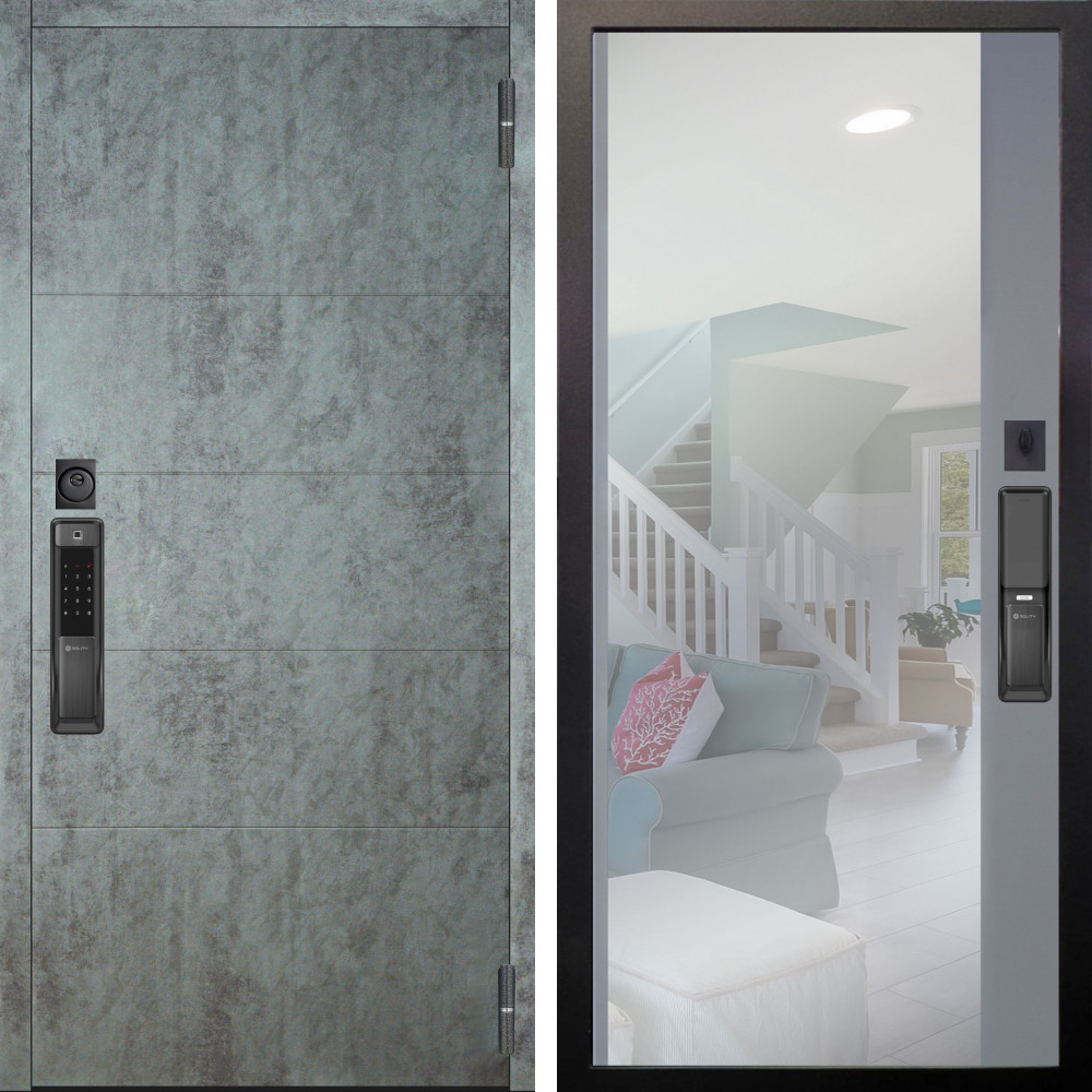 Входная дверь Шторм Графит SMART с внутренней отделкой Зеркало сб-16 черный кварц • Габаритные размеры: 2050x860 мм, 2050x960 мм • Металл 1.8мм. Черная шагрень • Внешнее покрытие: МДФ 12 мм. • Толщина полотна: 115 мм. • Толщина коробки: 120 мм. • Короб закрытого типа, утепленный • Уплотнитель: 3 контура • Два вертикальных ребра жесткости • ЭЛЕКТРОННЫЙ ЗАМОК НА ВЫБОР • Замок дополнительный: Гардиан 6001 • Врезная броненакладка • Пазы на коробке под доборы • Независимая задвижка есть • Фурнитура ЧЕРНАЯ