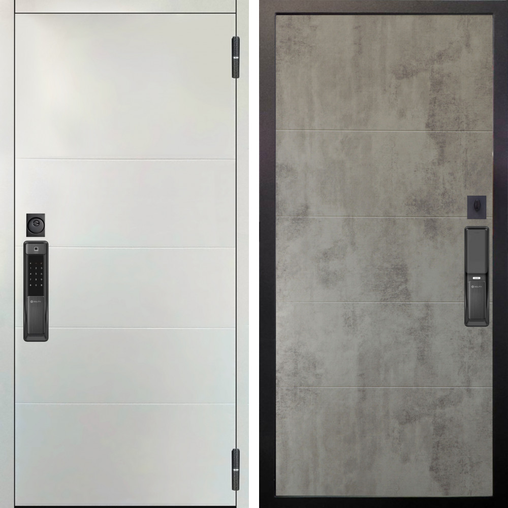 Входная дверь Аргус SMART Агат Вельвет белый горизонт + Агат Светлый бетон