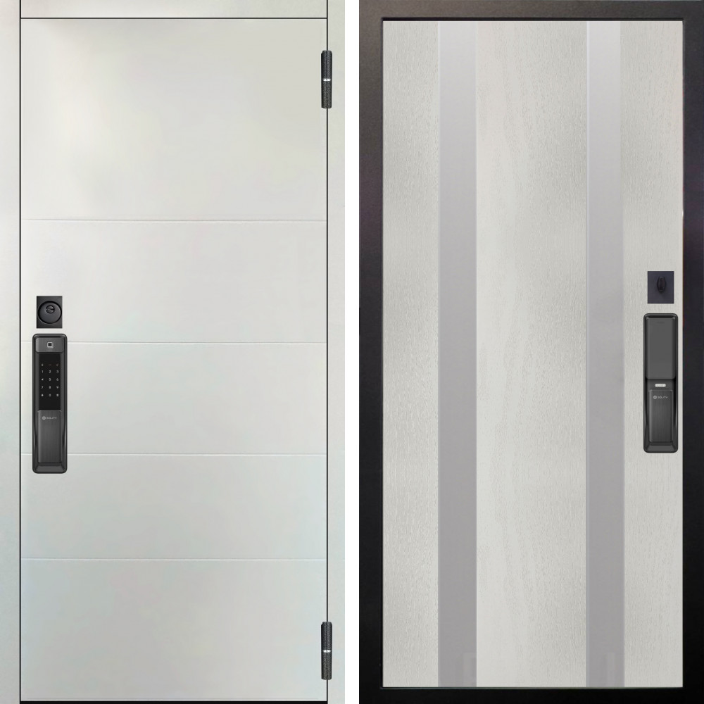 Входная дверь Аргус SMART Агат Вельвет белый горизонт + Дуэт Белое дерево вставки Изабель