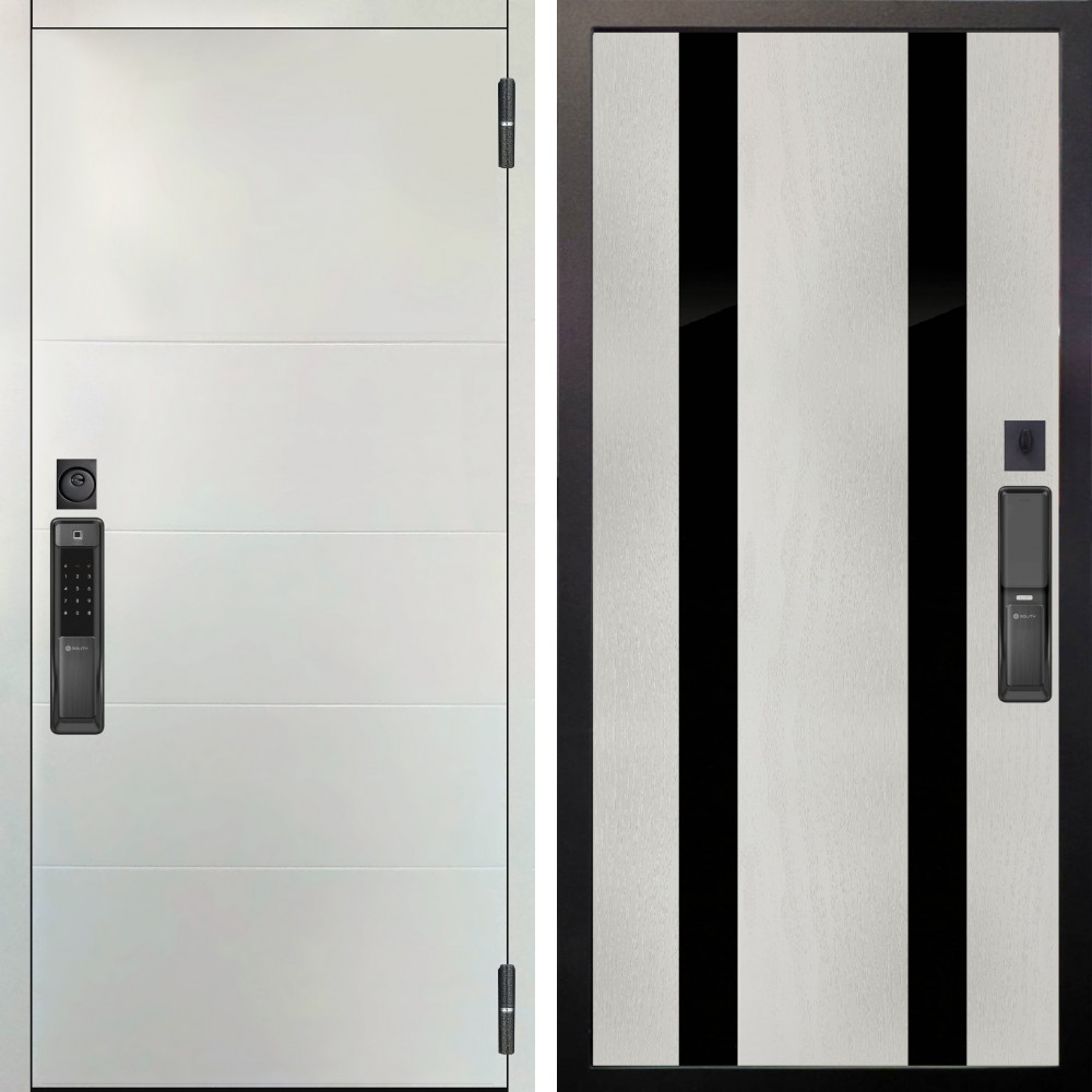Входная дверь Аргус SMART Агат Вельвет белый горизонт + Дуэт Белое дерево вставки Кензо