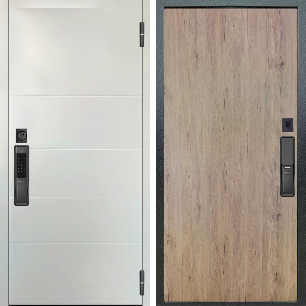 Входная дверь Termo-Door с терморазрывом и утеплением: внешняя отделка Премиум Геометрия Дуб, внутренняя отделка Лион Дуб.Толщина полотна 95 мм, цилиндровый замок, доставка и установка в Москве и МО, гарантия 1 год.