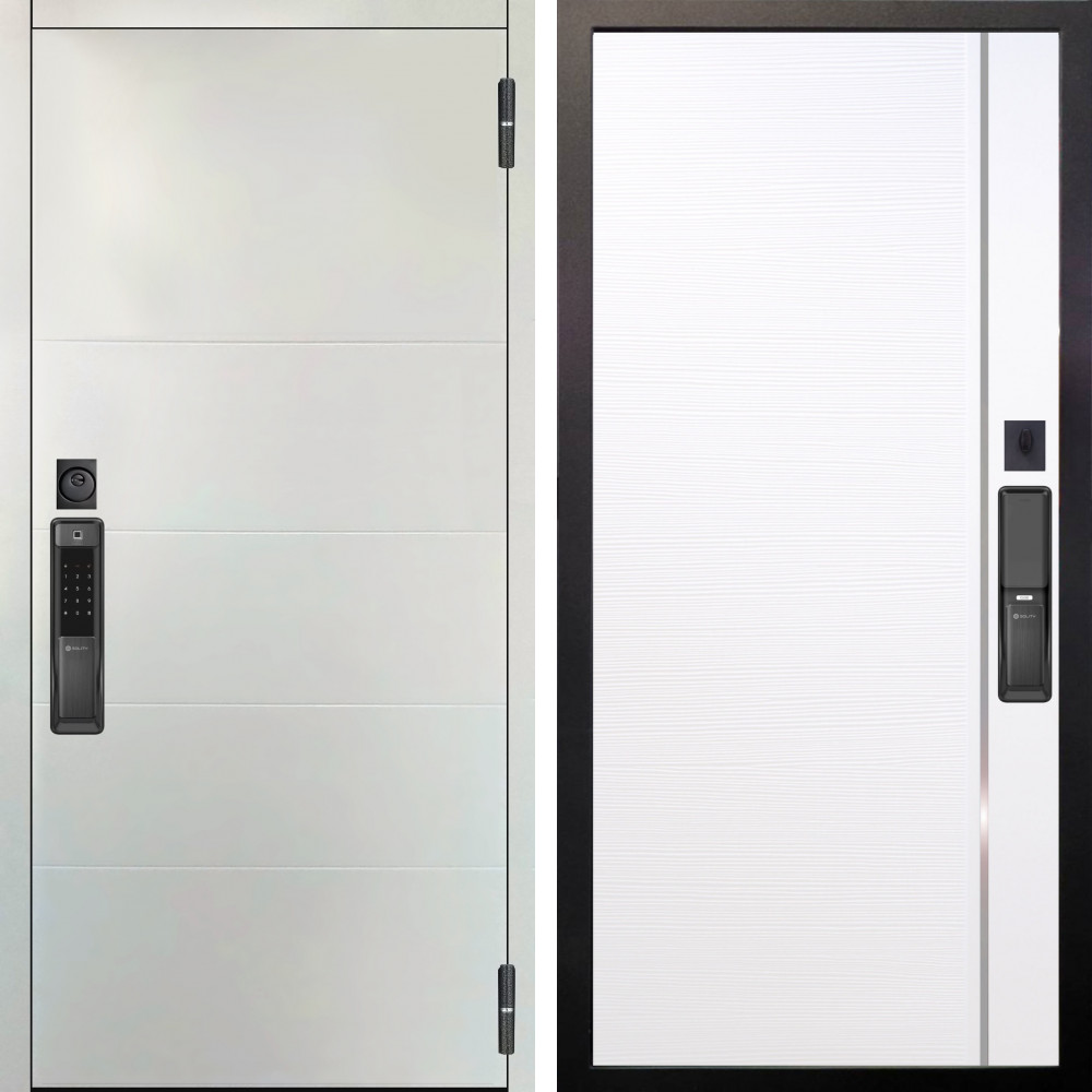 Входная дверь Termo-Door с утеплением: внешняя отделка Смарт Black Line, внутренняя отделка Flat Белый софт.Толщина полотна 95 мм, цилиндровый замок, доставка и установка в Москве и МО, гарантия 1 год.