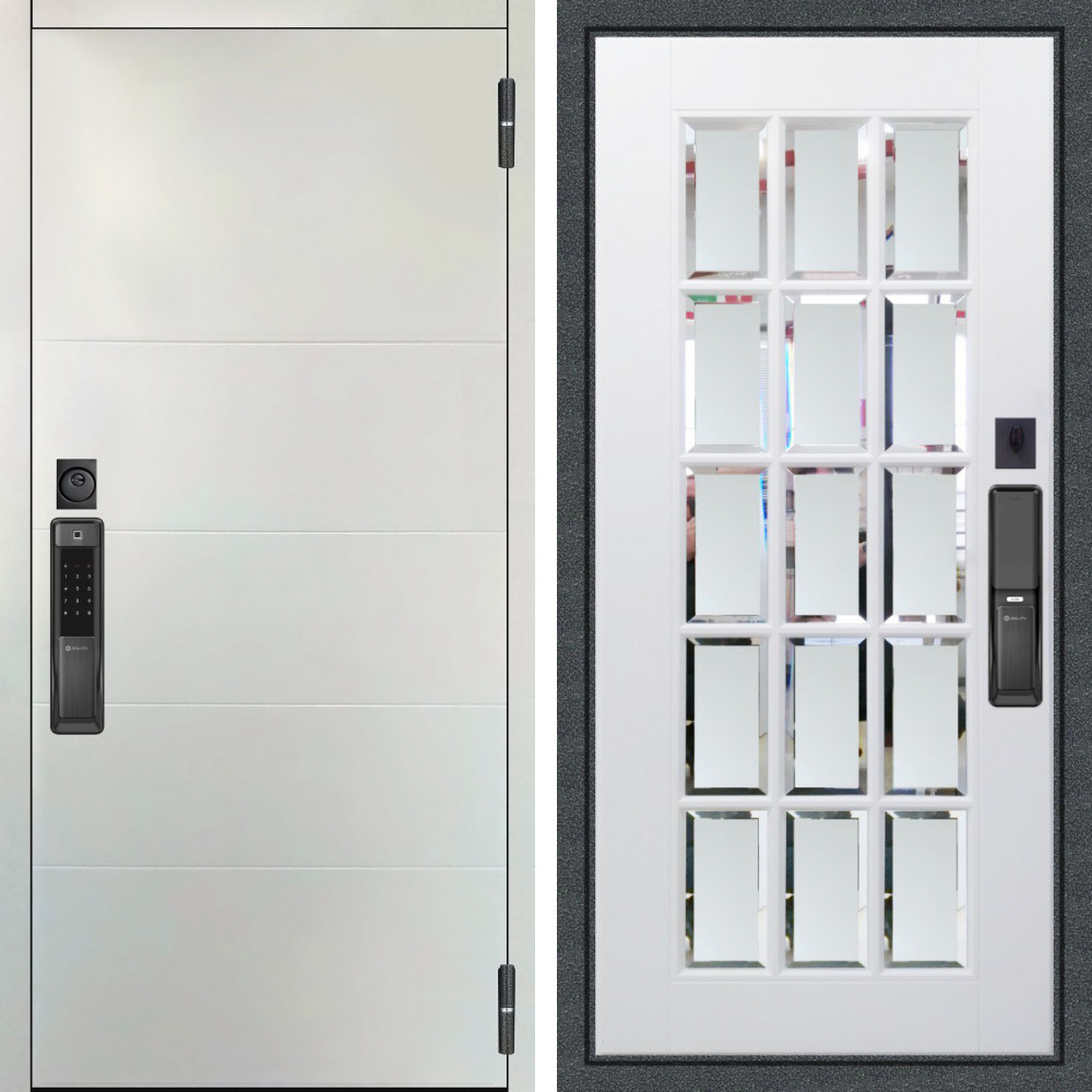 Входная дверь Аргус SMART Агат Вельвет белый горизонт + Мэрелин Софт милк зеркало с фацетом и пескоструем
