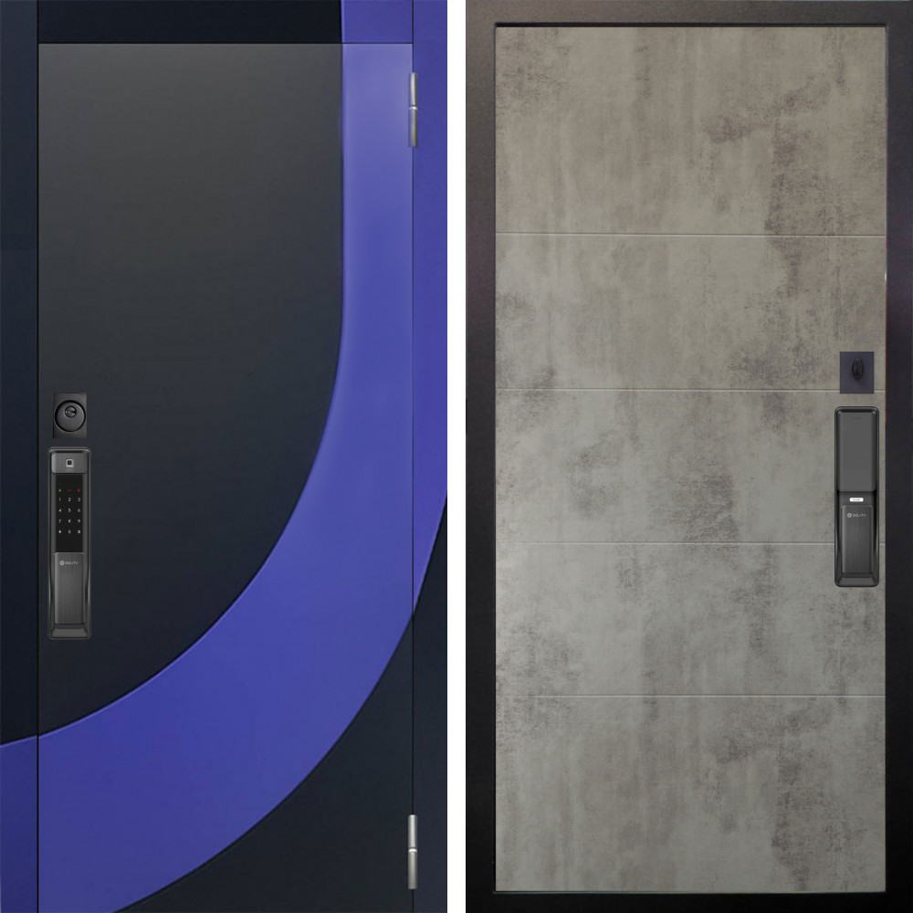 Входная дверь Аргус SMART Арабис Черный софт вставка Very Pery + Агат Светлый бетон