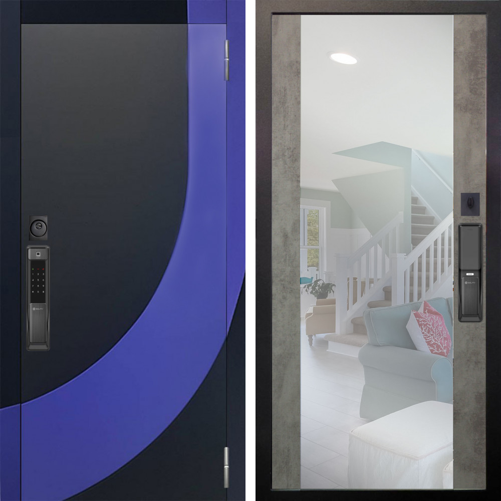 Входная дверь Termo-Door с утеплением: внешняя отделка Black Line, внутренняя отделка Зеркало Фацет Grey софт.Толщина полотна 100 мм., цилиндровый замок, доставка и установка в Москве и МО, гарантия 1 год.
