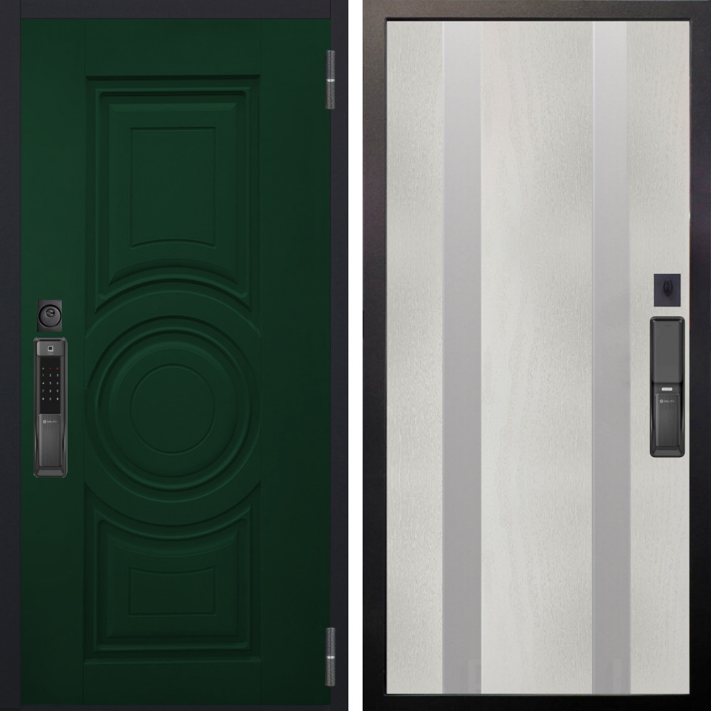 Входная дверь Аргус SMART Бенадир ral 6005 + Дуэт Белое дерево вставки Изабель