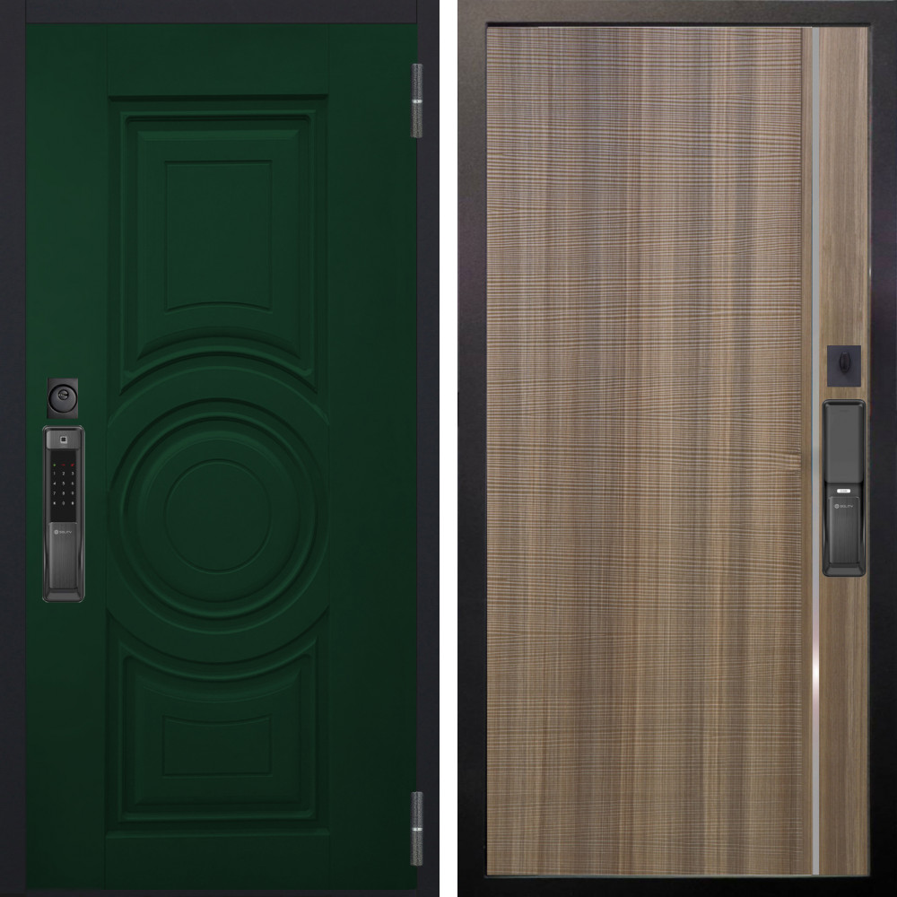 Входная дверь Termo-Door с утеплением: внешняя отделка Орегон Грин, внутренняя отделка Зеркало Фацет Черный кварц+тонировка серая.Толщина полотна 100 мм., цилиндровый замок, доставка и установка в Москве и МО, гарантия 1 год.