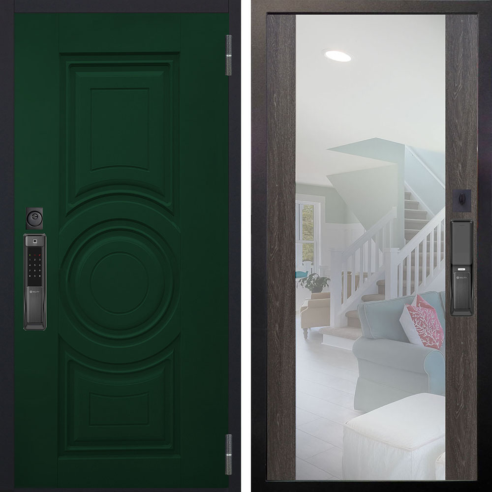 Входная дверь Аргус Smart Бенадир Зеленая эмаль Вояж дуб филадельфия графит