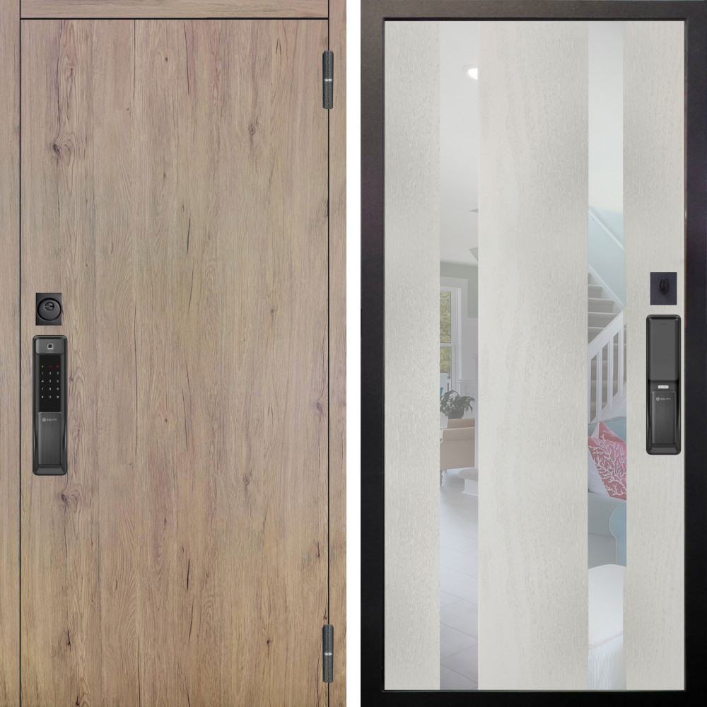 Входная дверь Аргус SMART Элегант Рустик соломенный + Дуэт Белое дерево вставки Николь