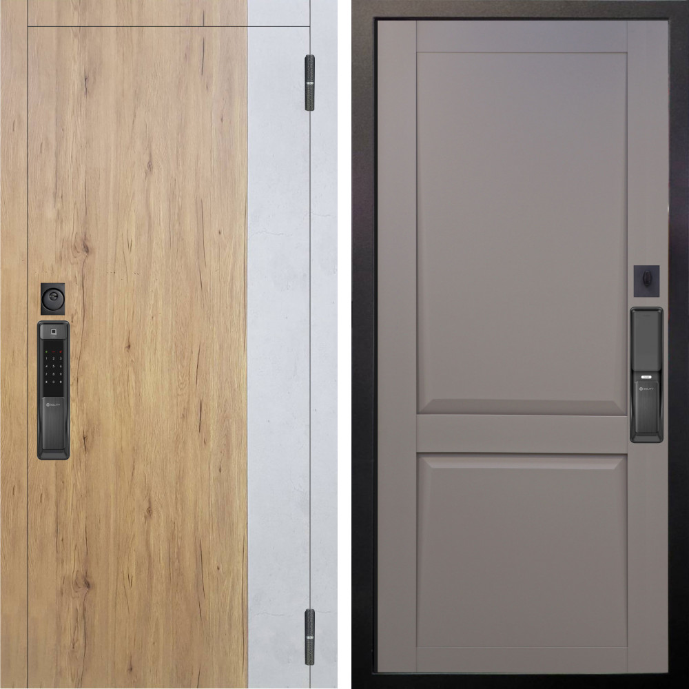 Входная дверь Termo-Door с терморазрывом и утеплением: внешняя отделка Премиум Форт Дуб, внутренняя отделка Лучи бетон светлый.Толщина полотна 95 мм, цилиндровый замок, доставка и установка в Москве и МО, гарантия 1 год.