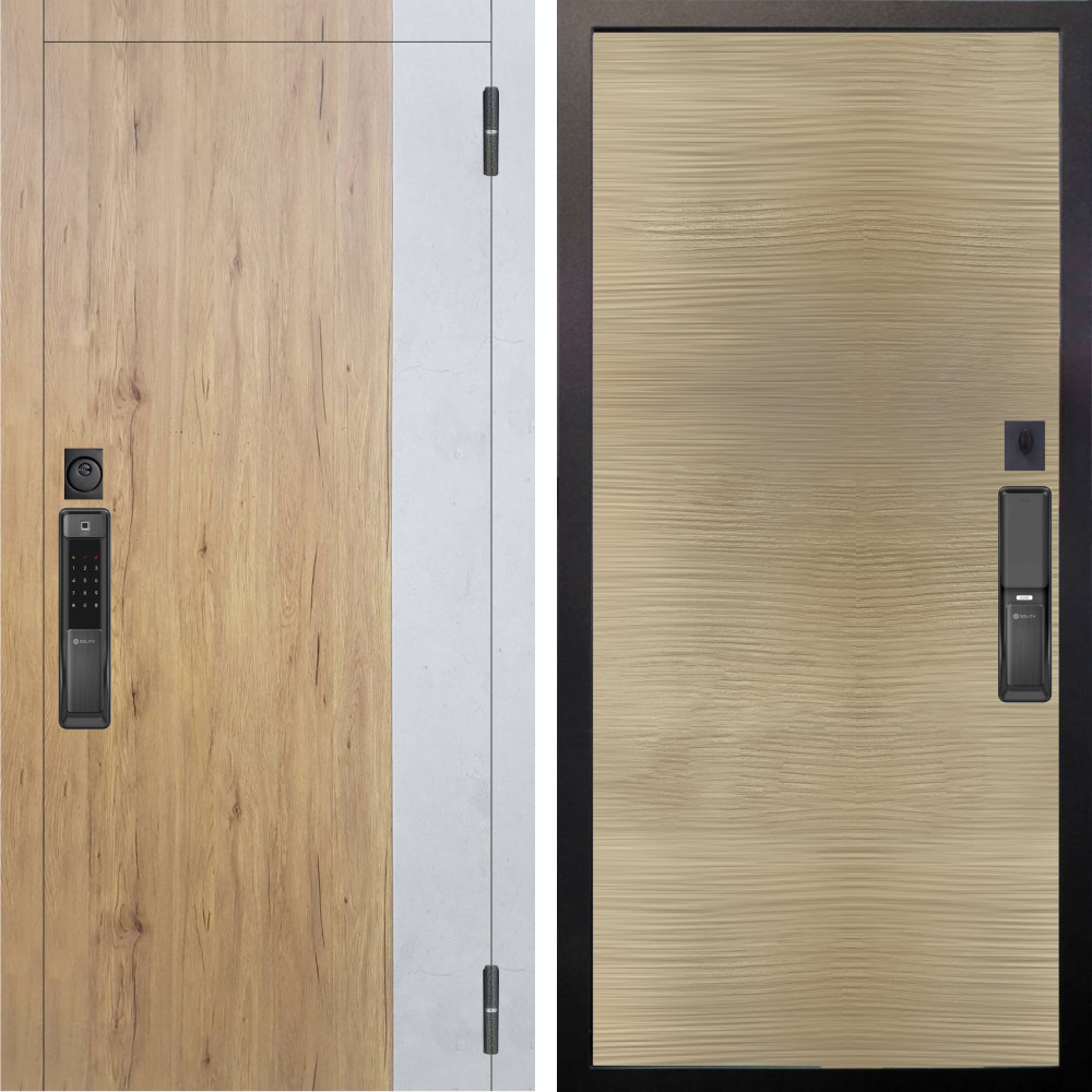 Входная дверь Аргус SMART Эксперт Рустик соломенный вставка бетон урбан милк + Элегант Дорс светлый горизонт