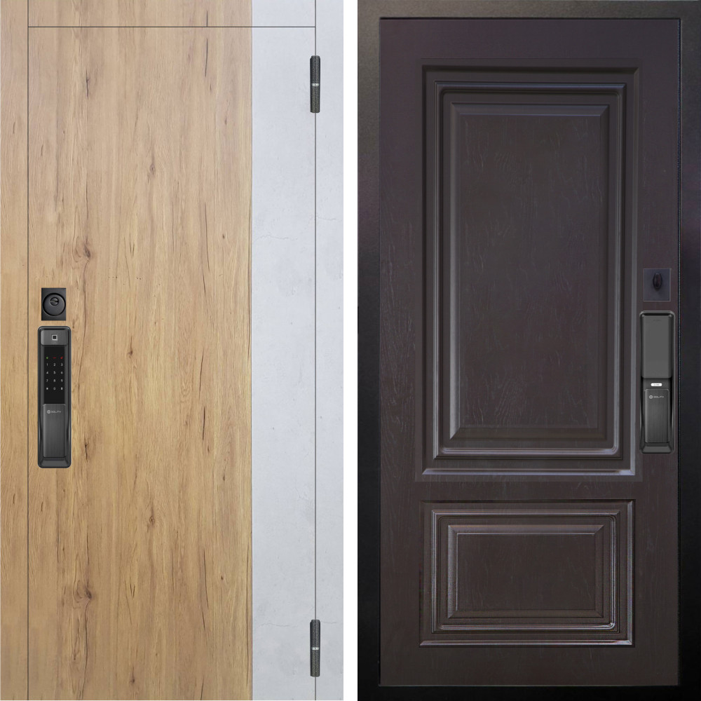Входная дверь Аргус SMART Эксперт Рустик соломенный вставка бетон урбан милк + Элион Горький шоколад