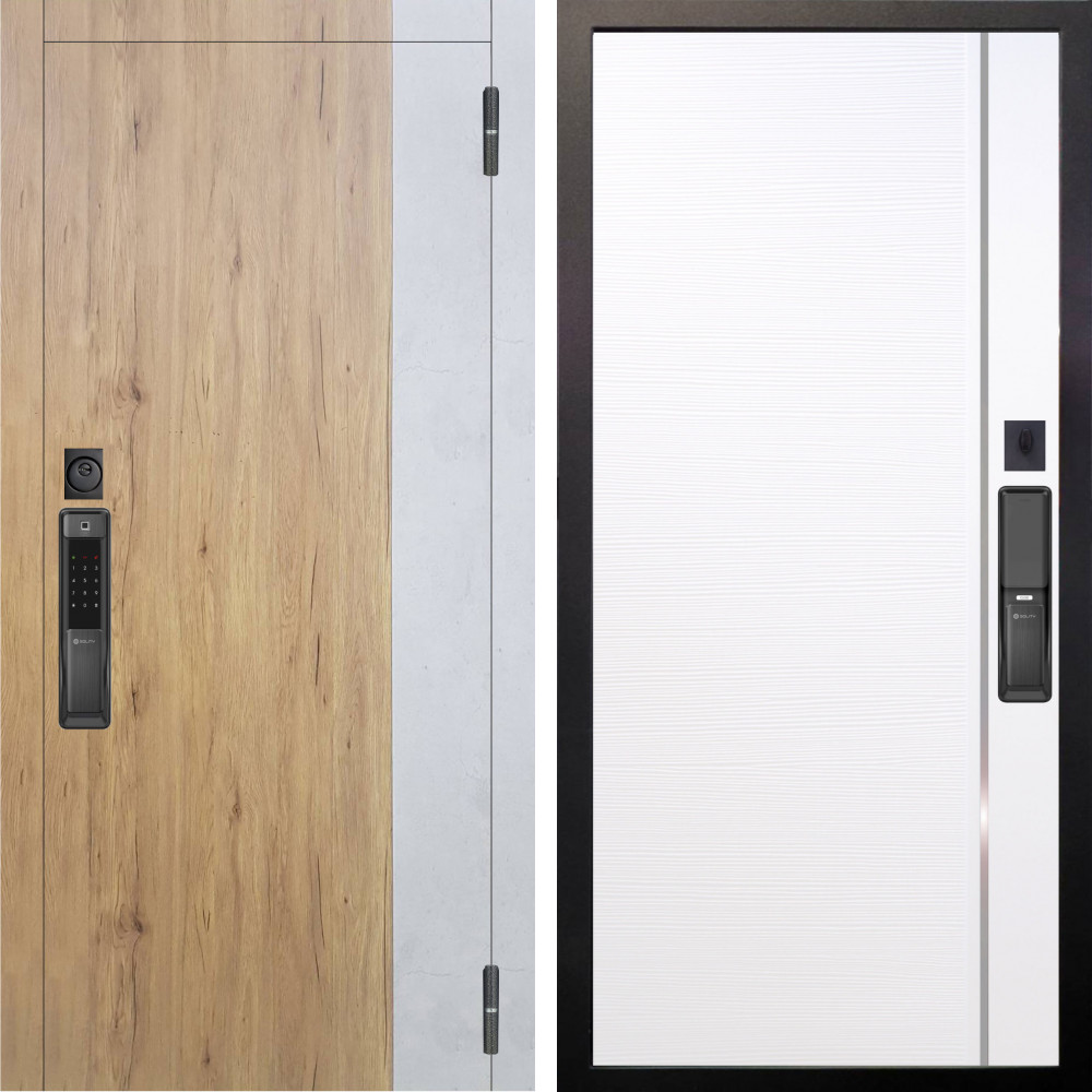 Входная дверь Аргус SMART Эксперт Рустик соломенный вставка бетон урбан милк + Гауда Роял вуд белый