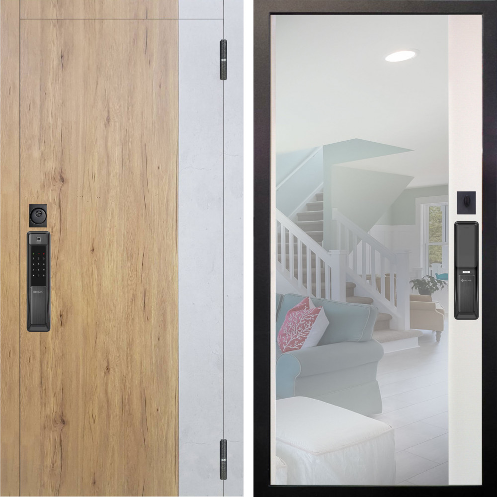 Входная дверь Termo-Door с утеплением: внешняя отделка White Line, внутренняя отделка Зеркало бетон темный.Толщина полотна 100 мм., цилиндровый замок, доставка и установка в Москве и МО, гарантия 1 год.