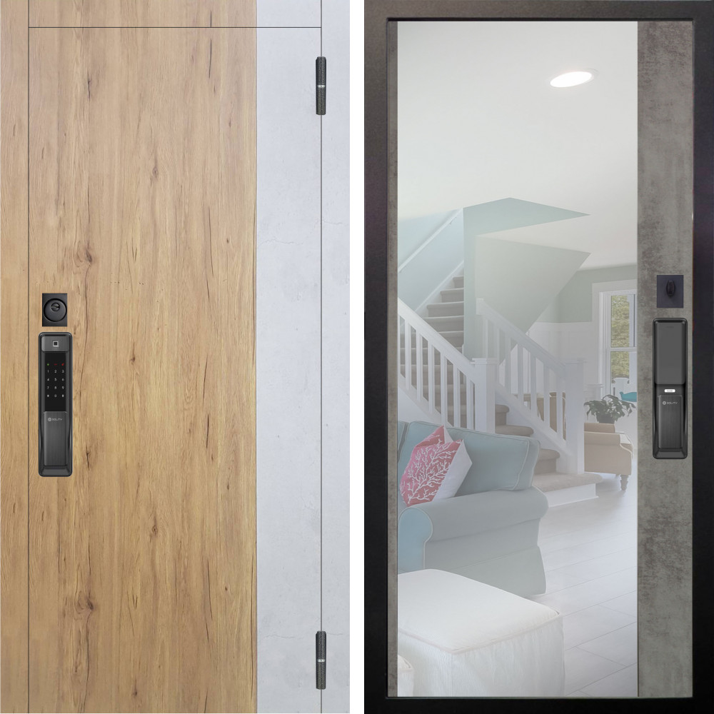 Входная дверь Аргус SMART Эксперт Рустик соломенный вставка бетон урбан милк + Магнум Светлый бетон