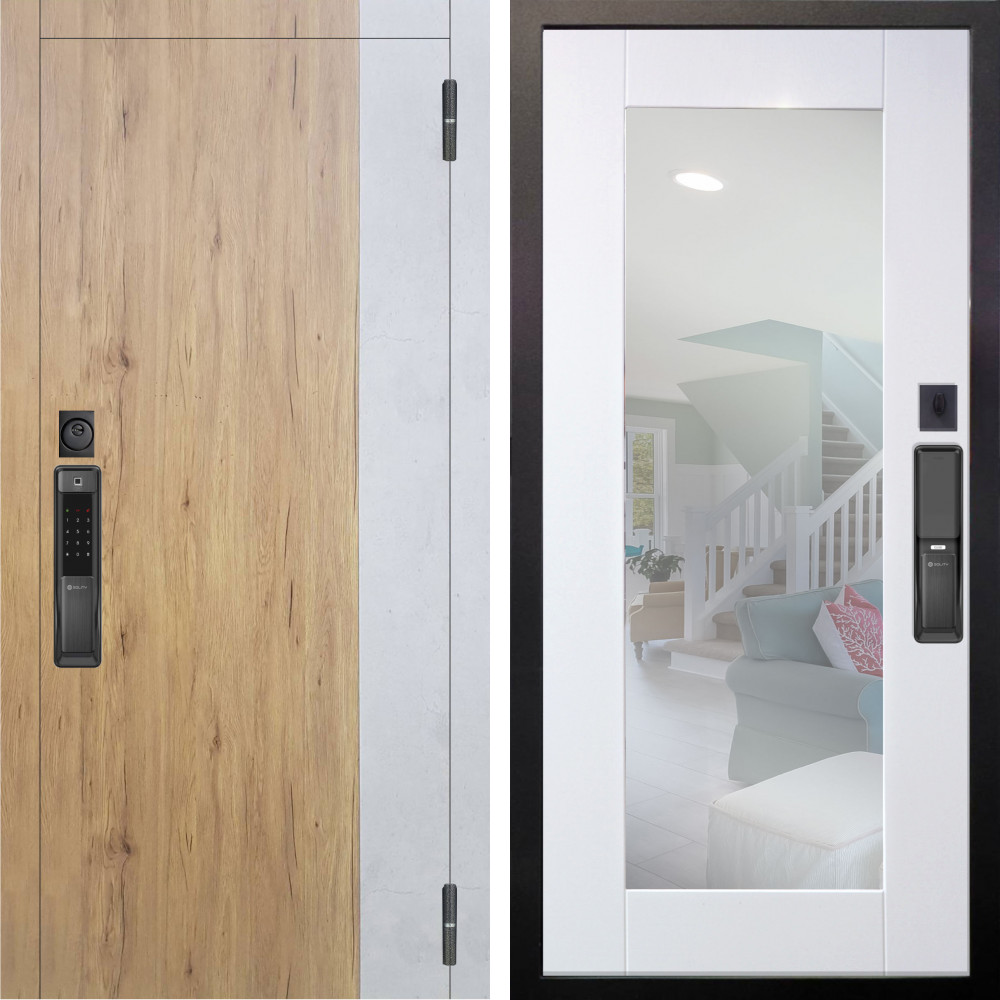 Входная дверь Аргус SMART Эксперт Рустик соломенный вставка бетон урбан милк + Милли Роял вуд белый