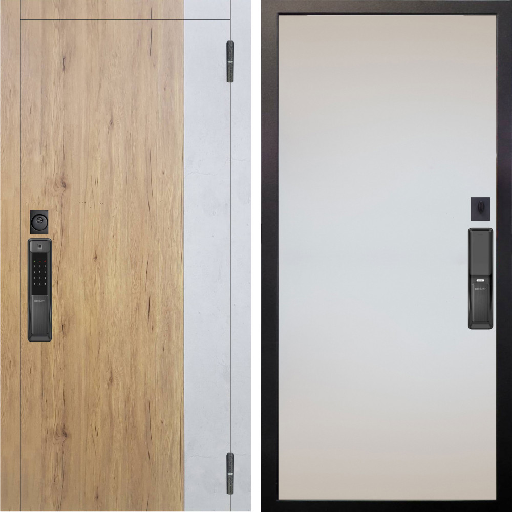 Входная дверь Аргус SMART Эксперт Рустик соломенный вставка бетон урбан милк + Под покраску