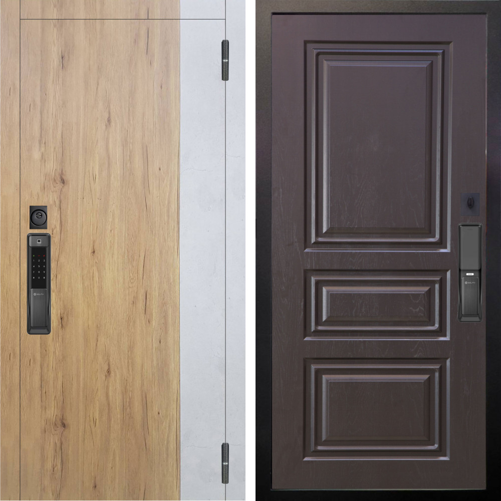 Входная дверь Аргус SMART Эксперт Рустик соломенный вставка бетон урбан милк + Скиф Горький шоколад