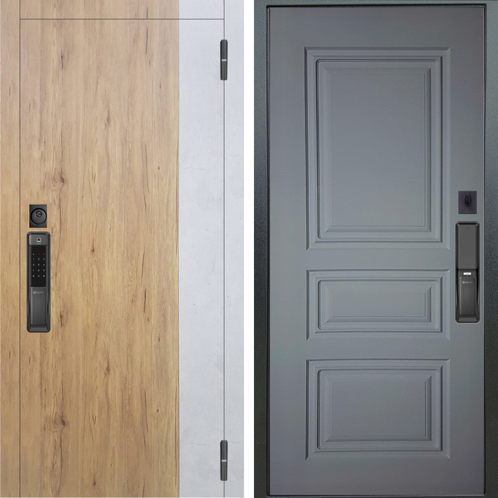 Входная дверь Гранит SMART с внутренней отделкой Классика венге • Габаритные размеры: 2050x860 мм, 2050x960 мм • Металл 1.8мм. Черная шагрень • Внешнее покрытие: МДФ 12 мм. • Толщина полотна: 115 мм. • Толщина коробки: 120 мм. • Короб закрытого типа, утепленный • Уплотнитель: 3 контура • Два вертикальных ребра жесткости • ЭЛЕКТРОННЫЙ ЗАМОК НА ВЫБОР • Замок дополнительный: Гардиан 6001 • Врезная броненакладка • Пазы на коробке под доборы • Независимая задвижка есть • Фурнитура ЧЕРНАЯ
