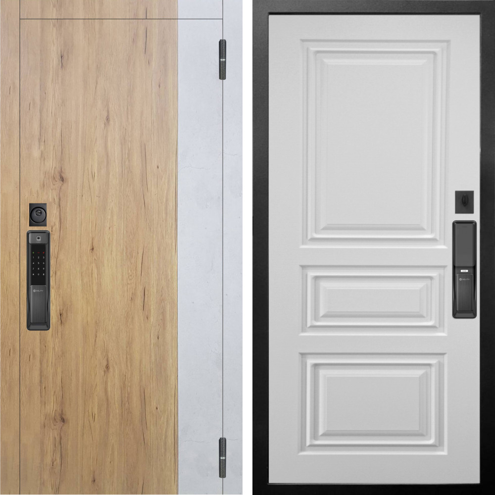 Входная дверь Аргус SMART Эксперт Рустик соломенный вставка бетон урбан милк + Скиф Софт милк