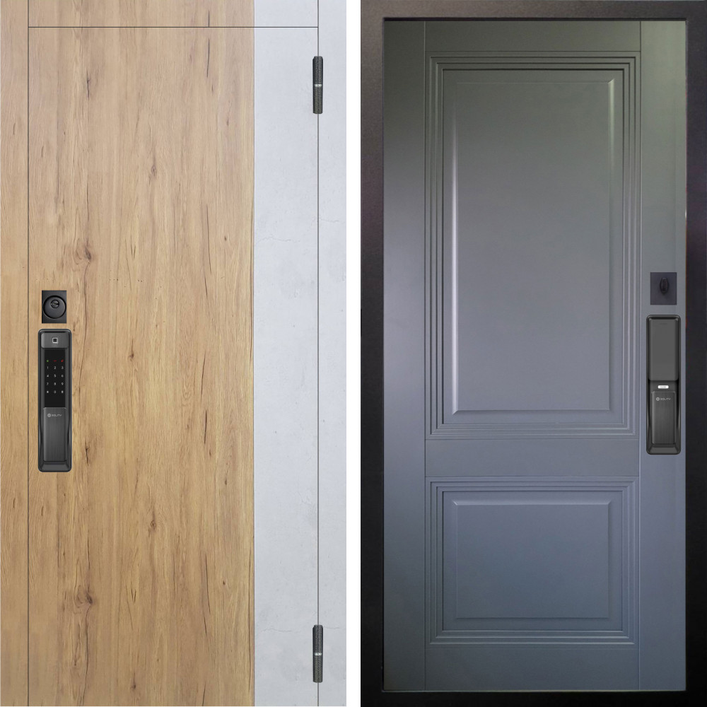 Входная дверь Аргус SMART Эксперт Рустик соломенный вставка бетон урбан милк + Соло Антрацит