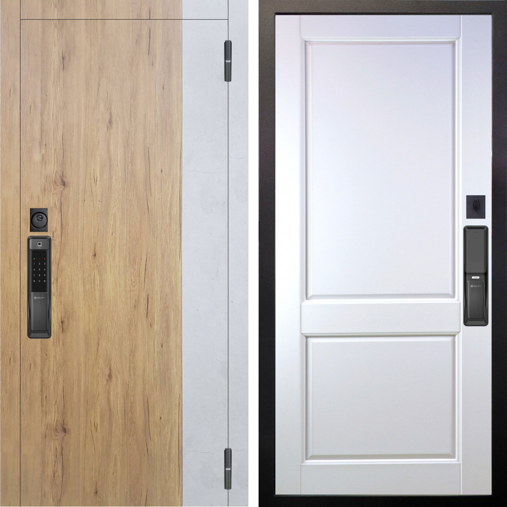 Входная дверь Аргус SMART Эксперт Рустик соломенный вставка бетон урбан милк + Соренто Белая эмаль