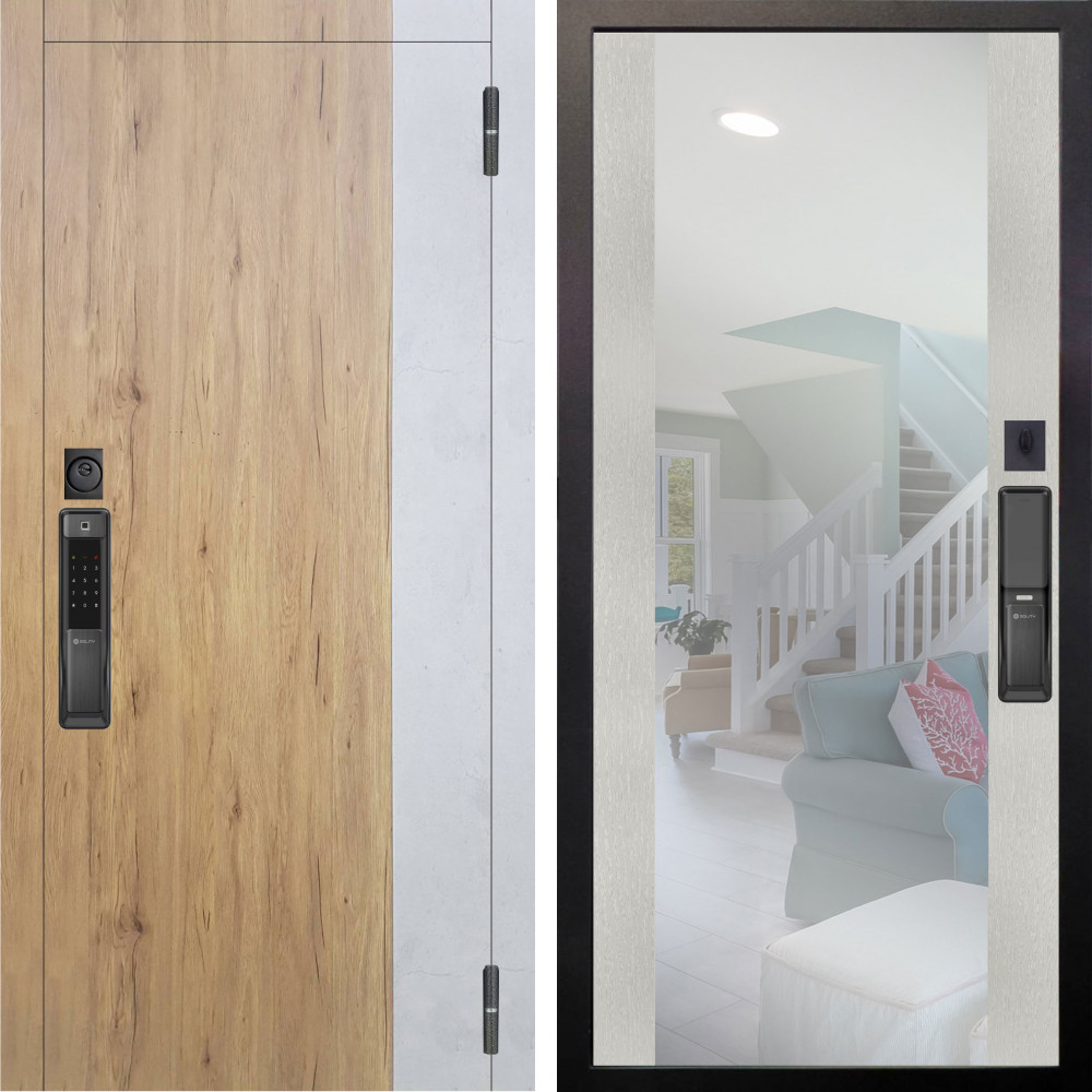 Входная дверь Аргус SMART Эксперт Рустик соломенный вставка бетон урбан милк + Вояж Белое дерево