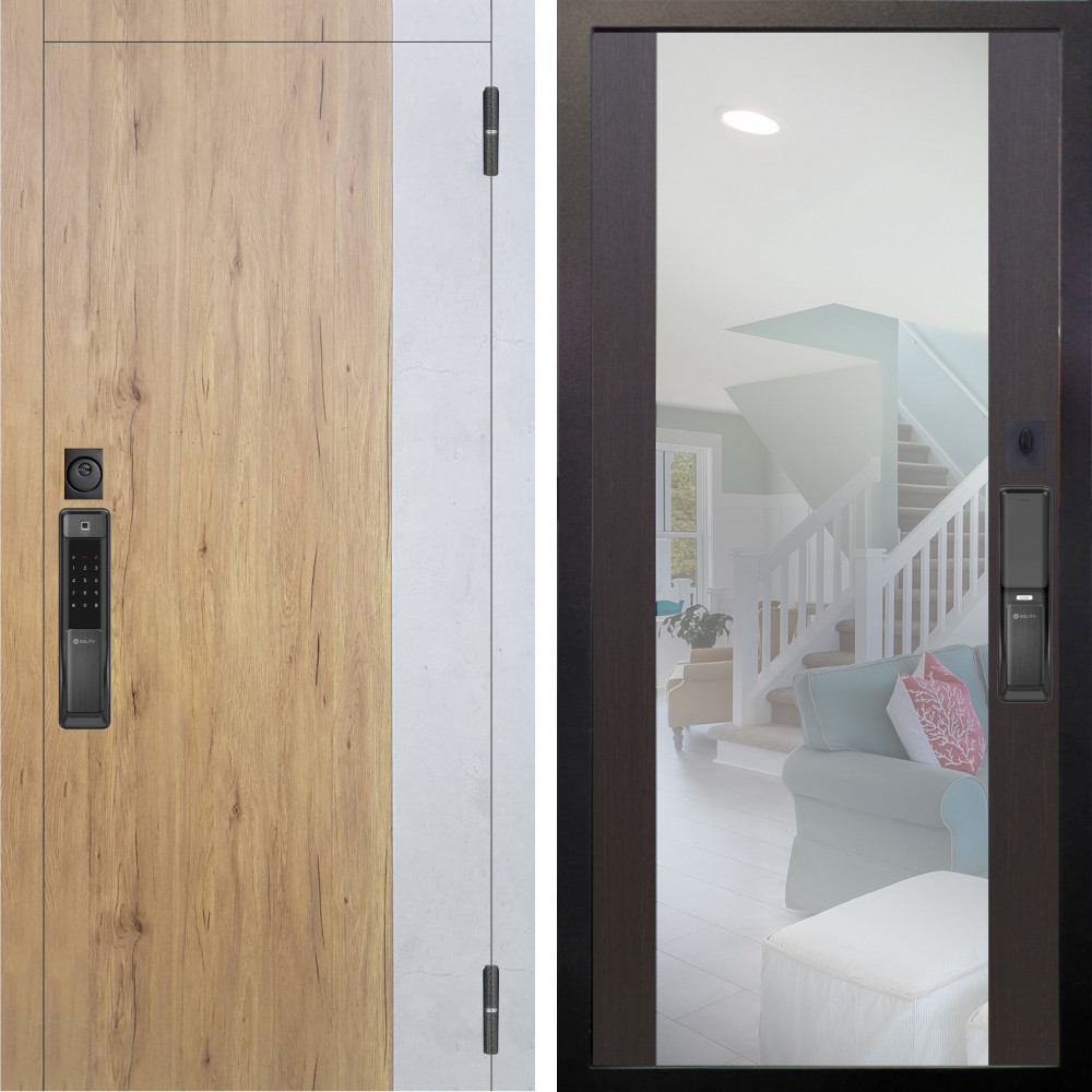 Входная дверь Аргус SMART Эксперт Рустик соломенный вставка бетон урбан милк + Вояж Венге