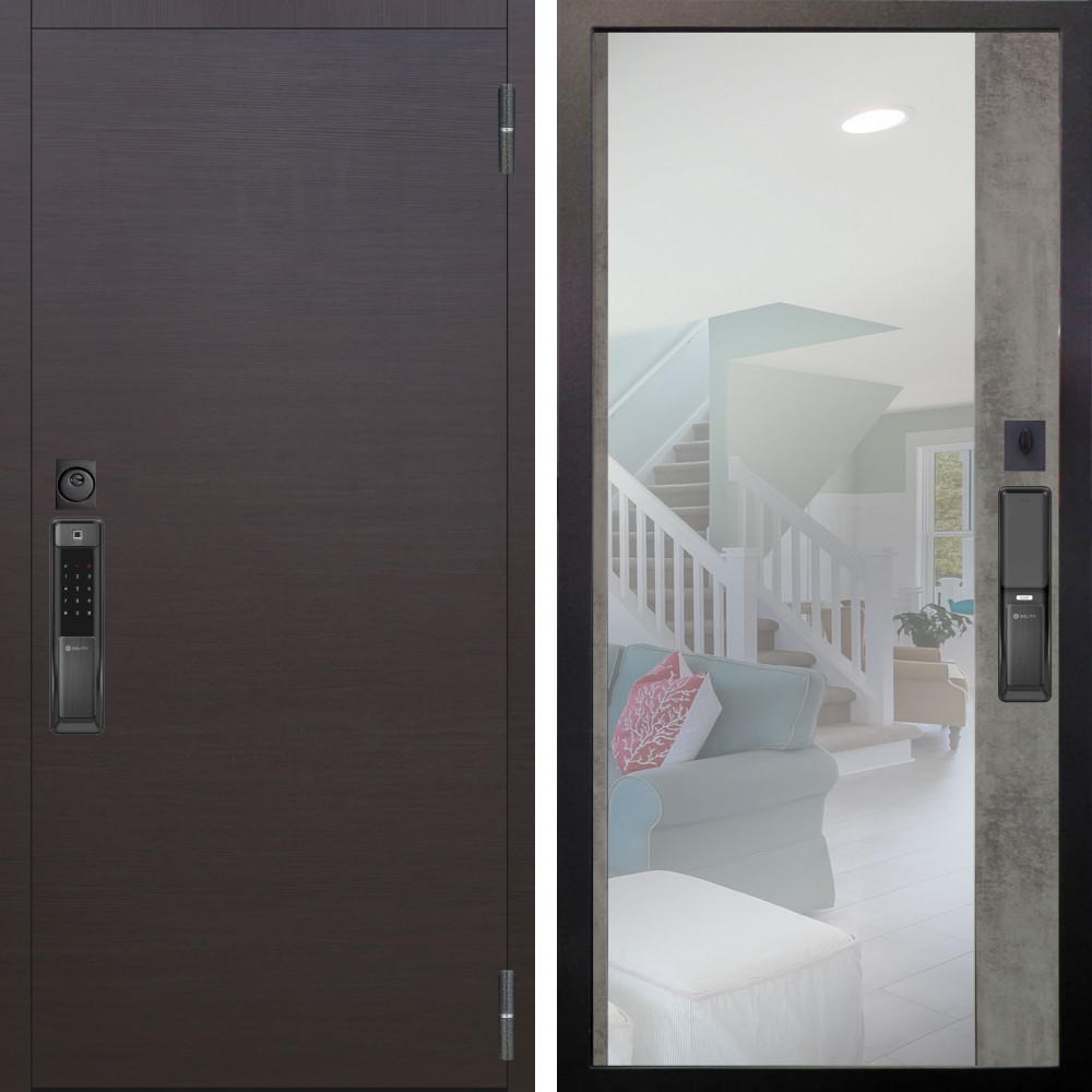 Входная дверь Termo-Door с утеплением: внешняя отделка Модена Венге, внутренняя отделка Зеркало Триумф бетон светлый.Толщина полотна 100 мм., цилиндровый замок, доставка и установка в Москве и МО, гарантия 1 год.