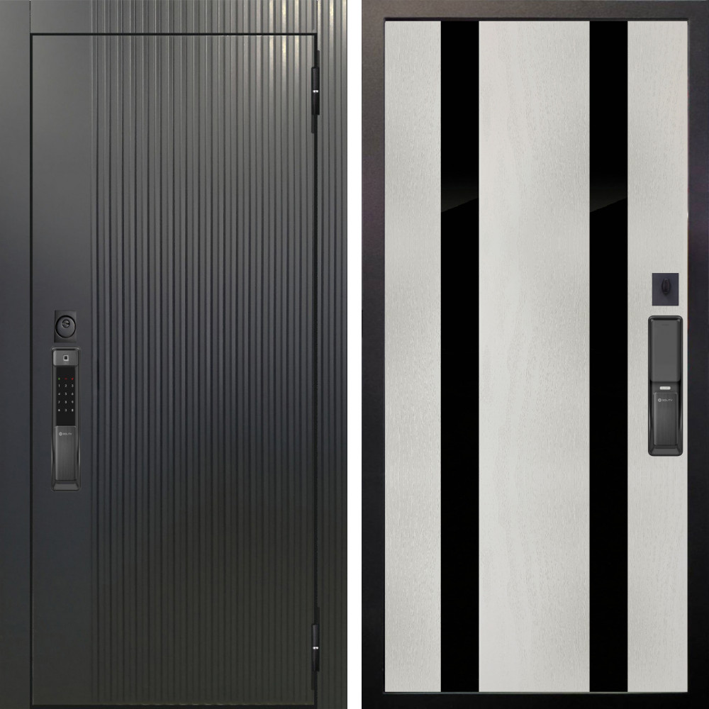 Входная дверь Аргус SMART Фрейда Черный кварц + Дуэт Белое дерево вставки Кензо