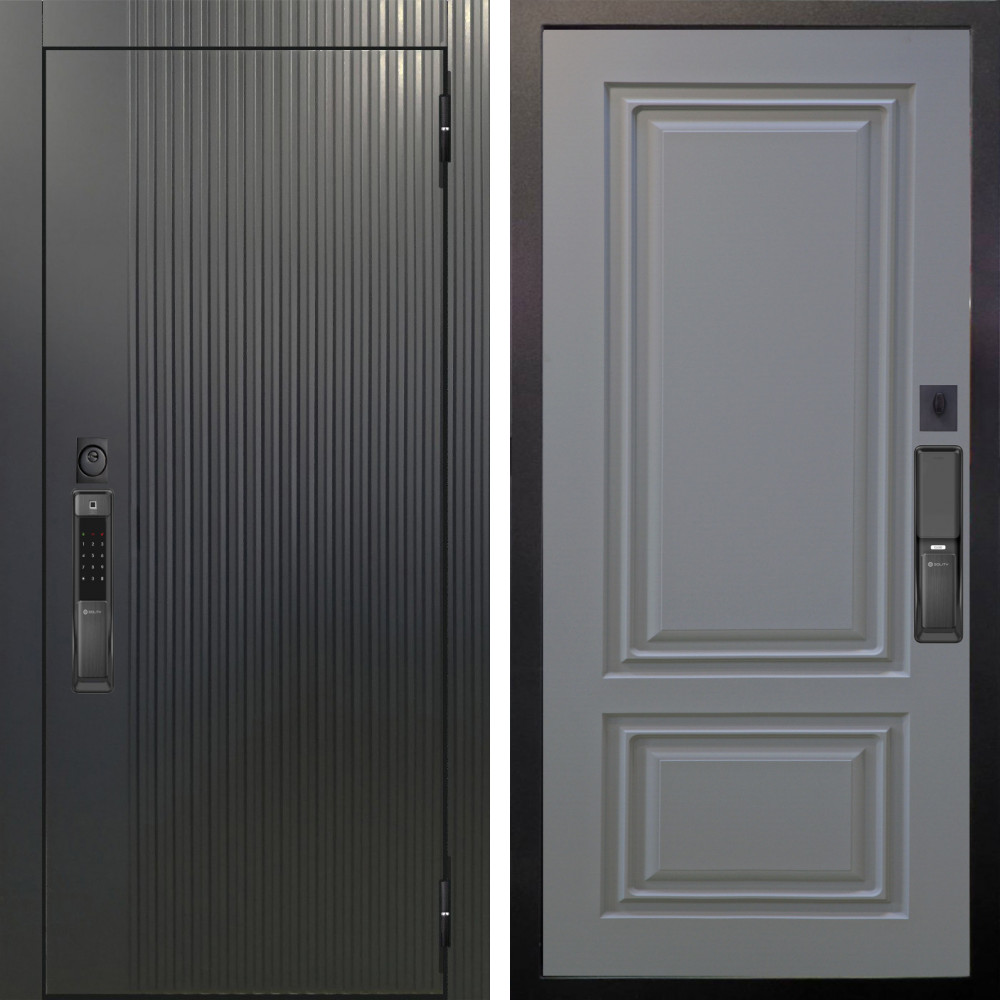 Входная дверь Вертикаль Блек SMART с внутренней отделкой ФЛ-119 белый матовый • Габаритные размеры: 2050x860 мм, 2050x960 мм • Металл 1.8мм. Черная шагрень • Внешнее покрытие: МДФ 12 мм. • Толщина полотна: 115 мм. • Толщина коробки: 120 мм. • Короб закрытого типа, утепленный • Уплотнитель: 3 контура • Два вертикальных ребра жесткости • ЭЛЕКТРОННЫЙ ЗАМОК НА ВЫБОР • Замок дополнительный: Гардиан 6001 • Врезная броненакладка • Пазы на коробке под доборы • Независимая задвижка есть • Фурнитура ЧЕРНАЯ