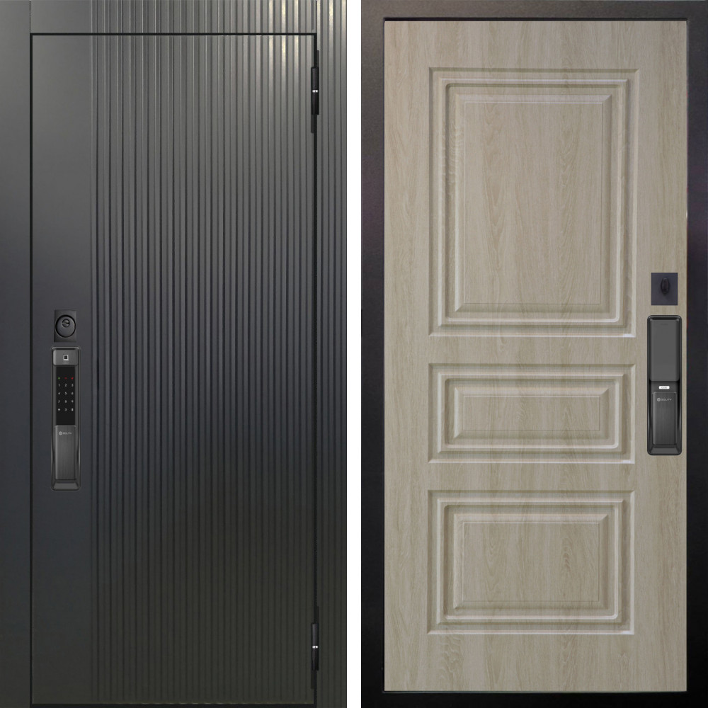 Входная дверь Аргус SMART Фрейда Черный кварц + Скиф Дуб филадельфия крем