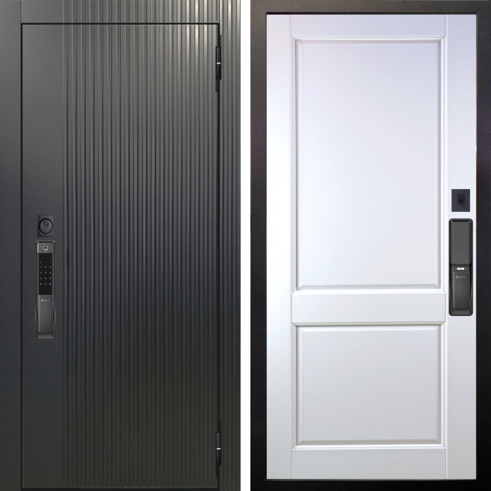 Входная дверь Аргус SMART Фрейда Черный кварц + Соренто Белая эмаль