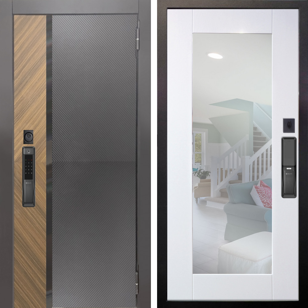 Входная дверь Termo-Door с утеплением: внешняя отделка Тренд Графит, внутренняя отделка Зеркало Фацет Черный кварц+тонировка серая.Толщина полотна 100 мм., цилиндровый замок, доставка и установка в Москве и МО, гарантия 1 год.