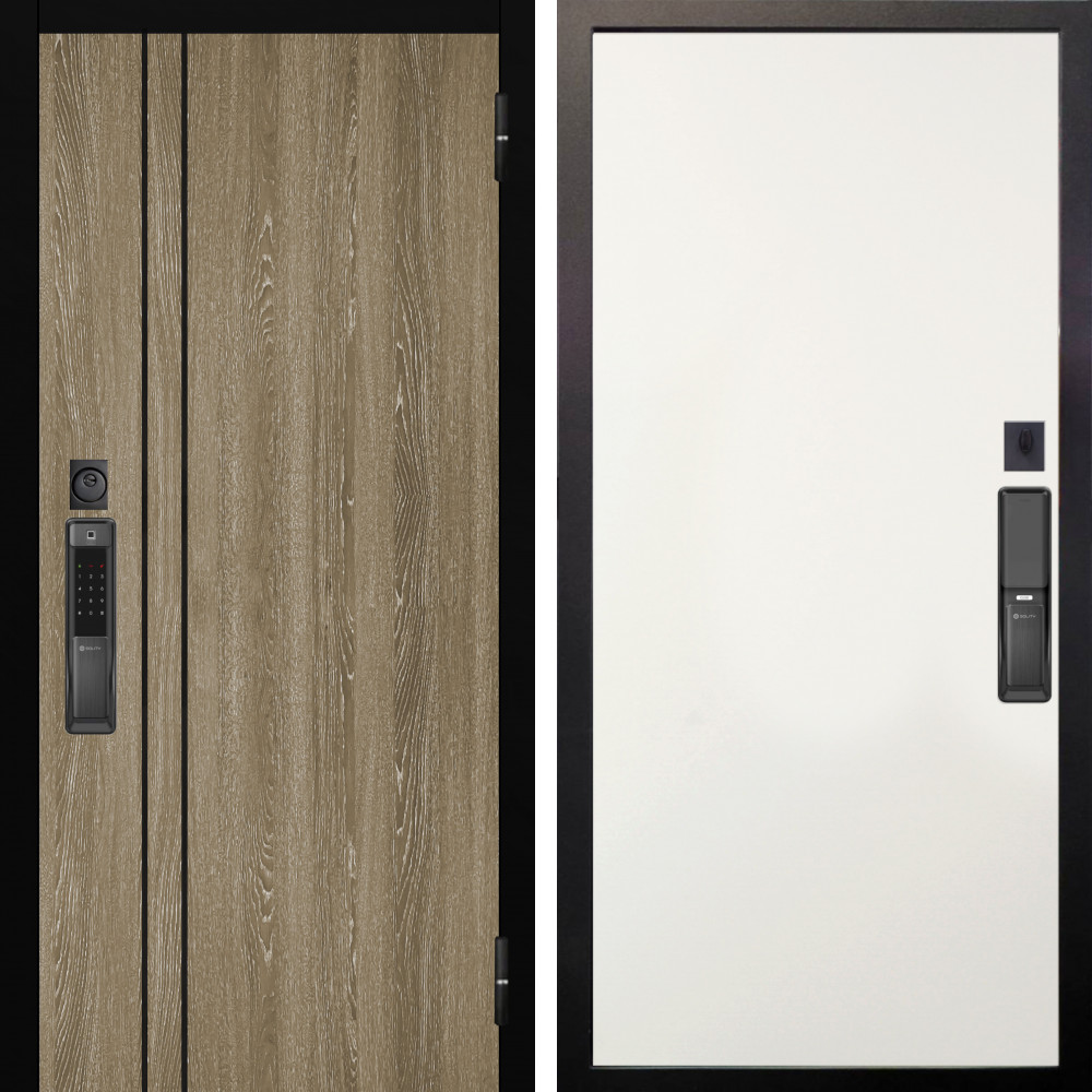 Входная дверь Termo-Door с утеплением: внешняя отделка Премиум Дуб, внутренняя отделка Лион Белый софт.Толщина полотна 100 мм., цилиндровый замок, доставка и установка в Москве и МО, гарантия 1 год.