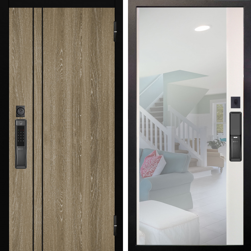 Входная дверь Престиж СО Стеклом SMART с внутренней отделкой Вертикаль Силк маус • Габаритные размеры: 2050x860 мм, 2050x960 мм • Металл 1.8мм. Черная шагрень • Внешнее покрытие: МДФ 12 мм. • Толщина полотна: 115 мм. • Толщина коробки: 120 мм. • Короб закрытого типа, утепленный • Уплотнитель: 3 контура • Два вертикальных ребра жесткости • ЭЛЕКТРОННЫЙ ЗАМОК НА ВЫБОР • Замок дополнительный: Гардиан 6001 • Врезная броненакладка • Пазы на коробке под доборы • Независимая задвижка есть • Фурнитура ЧЕРНАЯ