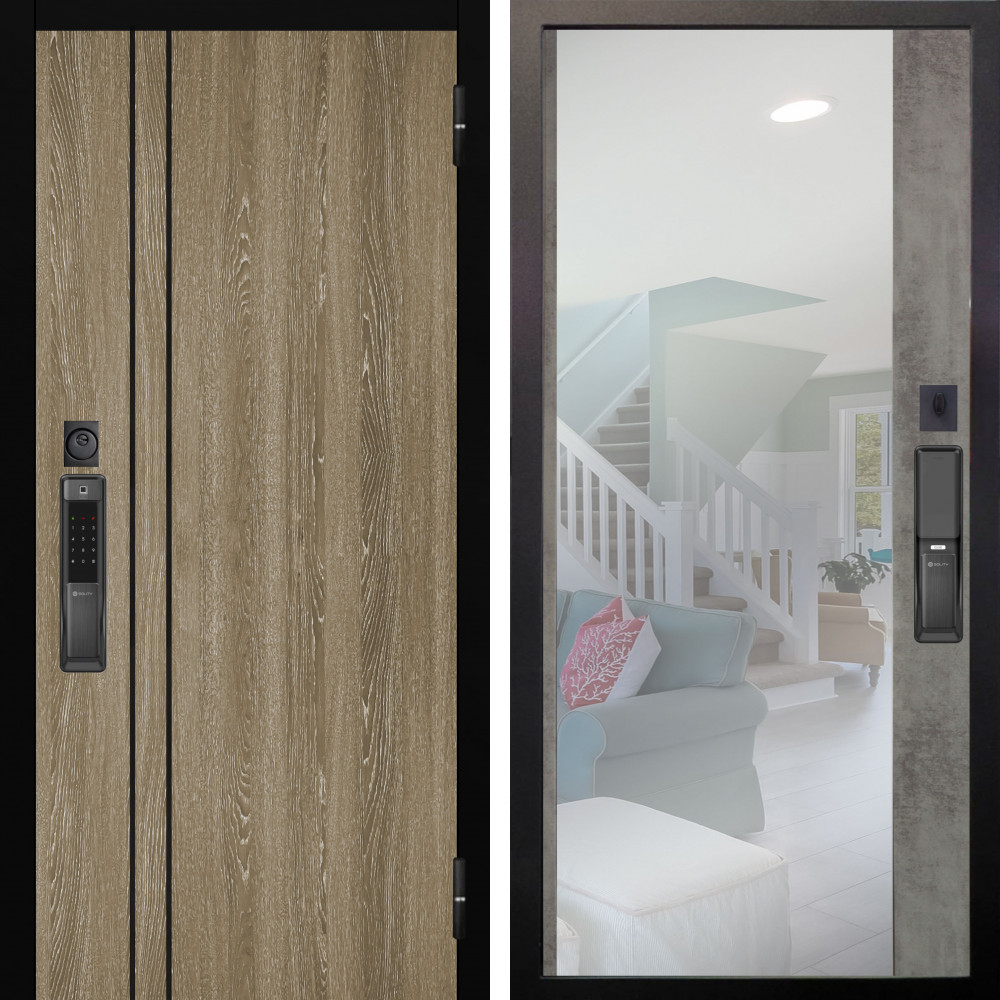 Входная дверь Termo-Door с утеплением: внешняя отделка Смарт Орегон Black, внутренняя отделка Зеркало дуб.Толщина полотна 95 мм, цилиндровый замок, доставка и установка в Москве и МО, гарантия 1 год.