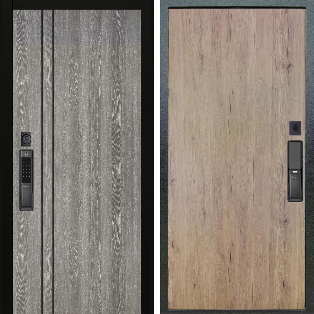 Входная дверь Termo-Door с утеплением: внешняя отделка Смарт Тренд Графит, внутренняя отделка Зеркало дуб.Толщина полотна 95 мм, цилиндровый замок, доставка и установка в Москве и МО, гарантия 1 год.