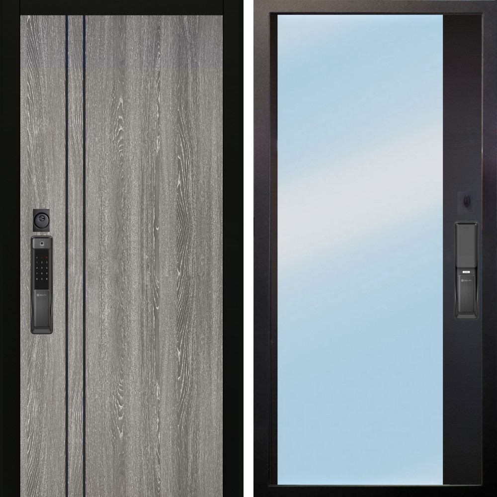 Входная дверь Termo-Door с терморазрывом и утеплением: внешняя отделка Премиум Геометрия Дуб, внутренняя отделка Горизонт белый.Толщина полотна 95 мм, цилиндровый замок, доставка и установка в Москве и МО, гарантия 1 год.