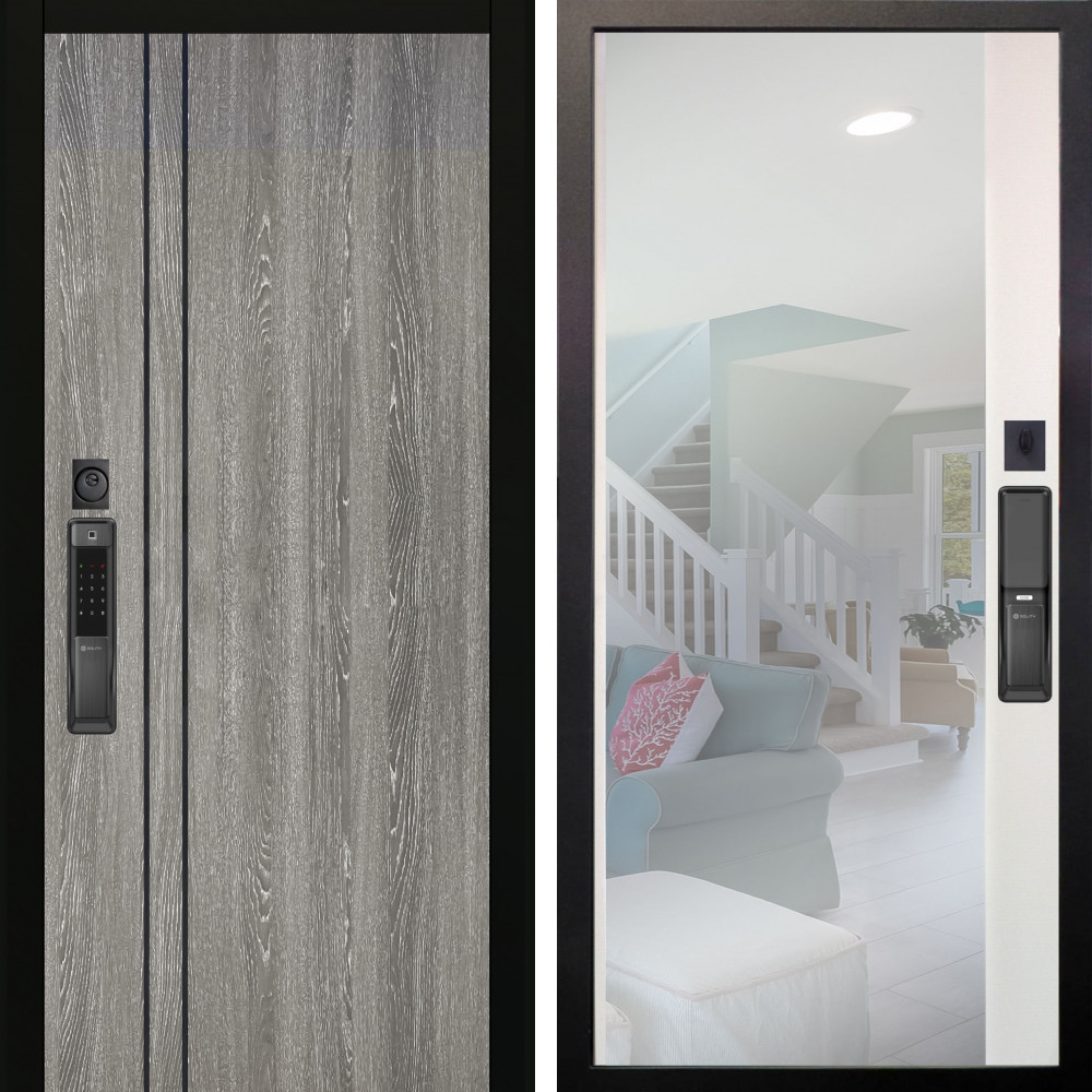 Входная дверь Termo-Door с утеплением: внешняя отделка Смарт Тренд White, внутренняя отделка Зеркало Фацет Черный кварц.Толщина полотна 95 мм, цилиндровый замок, доставка и установка в Москве и МО, гарантия 1 год.