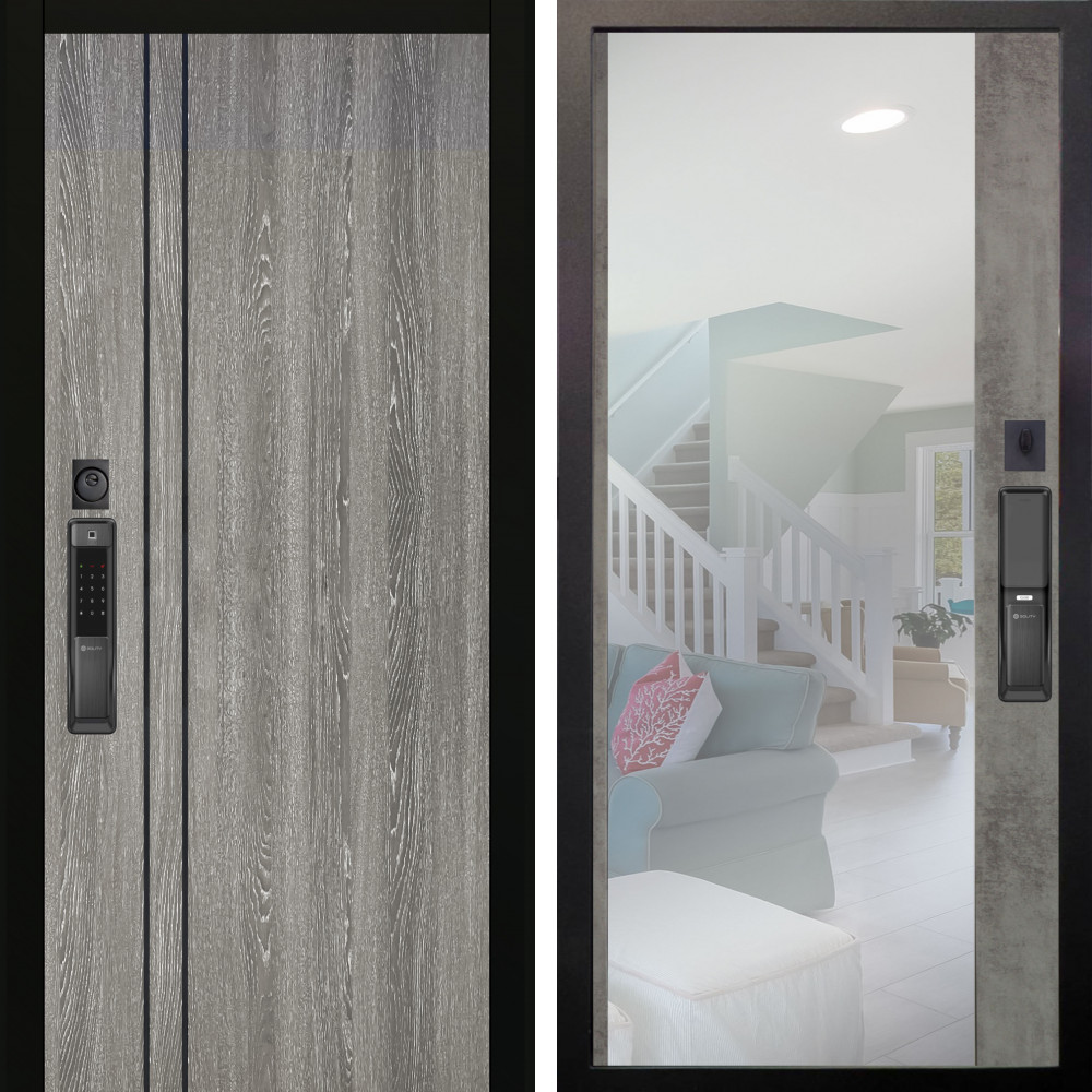 Входная дверь Termo-Door с утеплением: внешняя отделка Смарт Тренд White, внутренняя отделка Зеркало Фацет Черный кварц.Толщина полотна 95 мм, цилиндровый замок, доставка и установка в Москве и МО, гарантия 1 год.