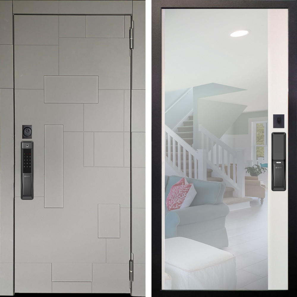 Входная дверь Termo-Door Вертикаль Grey - Зеркало Слоновая кость